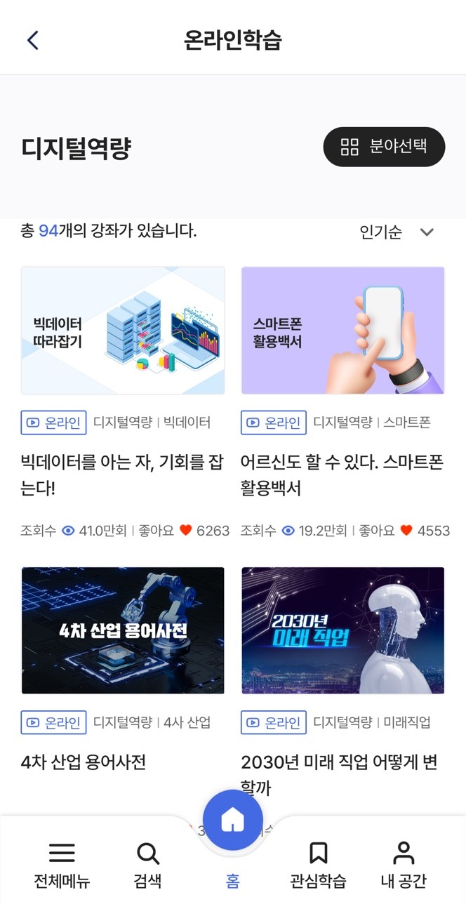 폭넓은 학습 콘텐츠 - 맞춤형 평생학습 플랫폼